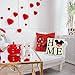 ❤️【Red Pillow Cover for Couch Valentine's Day Size】- 18x18 Inches (about 45x45 cm); Qty: 4pcs (NOT WHITE, PATTERNS ON BOTH SIDES, PILLOW COVERS ONLY, NO PILLOW INSERTS!!!). Style: Red rose bouquet with black and white wooden board background. Full of romantic girl's beautiful love and warm family atmosphere. Elements include flower bouquets, pearl necklaces, text love and home, birds, nests, still life furnishings, vases.