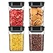 AIRTIGHT PANTRY ORGANIZATION CONTAINER: Keeps your food and snacks fresher and drier with the airtight lid. Great for storing candies, rose salt, sugar, beans, spices and more. It's also a great gift for your family and friends. 1 set includes 4 Small containers(0.36 L/12 oz). Measures: L x W x H 4.2" x 4.2" x 3.2"