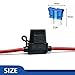 【12v Inline fuse holder for standard blade fuses 】-Fuses holder kit including 12PCS 14 AWG inline fuse holders with 60PCS standard car fuses (2A,3A,5A, 7.5A)X5PCS+(10A,15A,20A,30A)X10PCS . The auto fuse size:19mm x 5mm x 18.5mm.14 Gauge Waterproof Pigtail In-line Fuse Holder can support fuses rating of 1A 2A 3A 4A 5A 7.5A 10A 15A 20A ATC/ATO blade fuse.