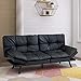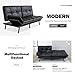 MODERN DESIGN: This futon fuses entertainment with comfort. The middle arm rest folds down with 2 cup holders so you can enjoy coffee with your friend. The durable faux leather makes for added comfort and easy wipe to clean.