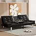 ROOM FOR 2: This stylish futon sofa has a 500-pound weight limit that lets you lounge in good company while utilizing a fold-down armrest with convenient cupholders in the middle