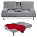 ROOM FOR 2: This stylish futon sofa has a 500-pound weight limit that lets you lounge in good company while utilizing a fold-down armrest with convenient cupholders in the middle