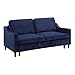Includes: One (1) Sofa Material: Fabric Composition: 100% Polyester Leg Material: Rubber wood Color: Blue Leg Finish: Natural Assembly Required Dimensions: 31.25 inch deep x 71.30 inch wide x 34.25 inch high Seat Width: 64.50 inch Seat Depth: 20.50 inch