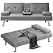 【THOUGHTFUL DESIGN】: The Fabric sofa bed is well designed for entertainment. The middle armrest folds down with 2 cup holders, so you and your friend can relax and enjoy a couple of beverages.