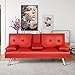 🏡【Faux Leather Futon Sofa Bed】This stylish futon sofa bed has a 600-pound weight limit that lets you lounge in good company while utilizing a fold-down armrest with convenient cupholders in the middle.