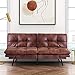 【Stylish & Quality Design】Durably crafted with tufted faux leather and 6 chrome metal legs, easy to clean and maintain, with a beautiful color and textures of leather, this convertible futon sofa bed fuses comfort and style that will last in your living space for years to come. The comfortable foam cushions make a perfect addition to your living room furniture arrangement and perfect for curling up with a good book or watching a movie.