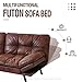 【Durable Faux Leather Sofa】Our futon is built entirely with strong hardwood and serpentine springs to dissipate weight evenly, enhancing comfort. Uses shredded memory foam for cushioning with a soft, durable upholstery that is easily cleaned. To finish, the futon has 6 heavy-duty metal legs equipped with protective gaskets to protect your floor.
