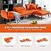 【3 Adjustable Angles & Multifunctional Ottoman】 The backrest of the orange velvet sectional sofa has 3 adjustable angles. Each backrest can be adjusted to 105 degrees, 120 degrees and 180 degrees which can meet your different needs during rest. You can place the ottoman anywhere next to the sofa. It also can be used as a coffee table to put magazines or fruit plates and relax your hands. Just enjoy your rest time.