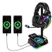 SIZE AND WIDE USE: RGB Headset stand featuring 10.5 inches standing height, Perfect for supports all size headphones including Bose, Beats, Sony, Panasonic, AKG, JBL, Audio-Technica, Sennheiser, Shure and more.Great PC headset holder for your headphone and saving desk space.