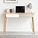 [Design, Less is More] — Get rid of tedious design, the computer desk of natural wood color in real life with a simple line style brings a feel of minimalism to the room, makes your space look neat, rustic, and elegant; And, the sleek grey and white colorblock drawers make your furniture match more layered; The simple nordic style writing desk is versatile for any scenes - home study, writing, or office work, gaming table, dressing table and so on.