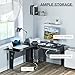 【Large Work Space】This computer desk comes with double desk, keyboard tray, storage bag, tower shelf, headphone hook and top hutch.The keyboard tray is ideal for the keyboard and mouse, which can free up more desk space.Top hutch can place files, books, leaving spacious space for writing, paperwork and other home office activities. This l shaped desk provides enough room to study, work or other office activities.
