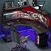 ✔【Cool RGB LED Lighting】The Z1-S gaming table is dimension of 44.49” (L) x 24.21” (W) supports wide monitors up to 40”. Equipped with LED lighting on the armor. Multiple Lights Plug the USB into your gaming PC or laptop and the immersive RGB lights will bring you the fighting mood. 6 main colors, a variety of dynamic modes, provide you with more options to create a game and work atmosphere.