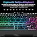 【Professional Gaming Keyboard】Advanced anti-ghosting technology allows at most 26 keys to work simultaneously to provide a fast game response. Win lock function, avoiding mistakenly typing and sweeping away the disturbing obstacles during your gaming. The integrated wrist rest and non-slip foldable stands give you the comfort you need for marathon gaming sessions, relieving fatigue for long hours pc gaming