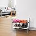 STURDY & DURABLE: Shoe rack shelf is made from thickened metal tube and chrome finish that’s corrosion-resistant. Includes steel crossbars coated in a non-slip, textured epoxy to keep shoes stable. Comes with screw for assembly.