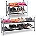 【Long Shoe Rack for 18 Pairs of Shoes】 Size of metal shoe rack: 42.7"Wx11.4"D x18.7"H. Longer 2-tier shoe organizer for closet can store 18 pairs of shoes for men, women and kids, each tier wide enough storage for 6 pairs of men's sneakers, tennis shoes etc, extra bottom storage for flats, slippers and flip flops enough;
