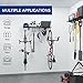 MULTIFUNCTIONAL GARAGE STORAGE SYSTEM: Comes with 2 wall shelf and 8 hooks. Perfect to hang or store bikes, tools, storage boxes, sport equipment, and other items.