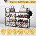 【Upgrade Sturdier Material】- Our 4-tier shoe rack organizer is made of robuster powder-coated metal tubes and high-quality plastic connectors.Stable structure and thicker coating tubes gives this black show rack good stability and load much heavier duty and more durable.
