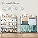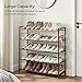 STRONG BEARING:Thick and strengthen metal tubes and wider double row holes plastic connectors make the structure sturdier and more durable. The shoes organizer for closet load much heavy duty shoe rack large and endurance much stronger.The shoe shelf for closet not tip over once finish the zapateras organizer for shoes shelves pares.Also as a shoe rack for kids shoe rack closet toddler shoe rack.Or remove one tier zapatero to fit higher and larger item, boot rack organizer tall boots etc.