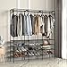 ✔【Large Storage Solution】 :Double hanging bars accommodate both long and short garments. Every garment rod hold up 50 lb .4 smaller shelves and 2 bigger shelves ensure you plently of room to place clothes, accessries, shoes etc. And put large box or off-season clothes on the top for added storage.