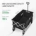 Extra Large Capacity: Our sturdy outdoor utility wagon has an upgraded black steel frame for improved stability, with no assembly required. It sets up in seconds and can hold up to 176 pounds of cargo. Dimensions when open are approximately 42" x 36" x 20", and when folded, they are 29" x 13" x 9".
