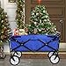 Professional Blue Multipurpose Folding Wagon: Extra-large, heavy-duty all-terrain folding utility wagon with a hefty load capacity and a high weight capacity of 150 lbs. (70 kg). It has a heavy-duty tubular steel frame, and the cart basket is made from a durable 600 denier polyester fabric that is removable for easy cleaning.