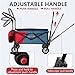 Heavy Duty Frame – Sturdy black powder coated steel frame is more stable and better than general iron frame. Telescoping handle provides an easy operation on most terrains, You can choose to pull or push the collapsible utility wagon through the adjustable handle. 7 inches diameter large wheels with rubber tape at middle is suitable for hard road surface, while 4 inches extra wheel width makes wagon suitable for sand.