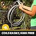 WONT'T KINK UNDER PRESSURE– Our hybrid hoses are memoryless, meaning it will lay flat, resist kinks, and can coil easily, making them a breeze to put away. Watering hose supports 150 psi working pressure and 450 PSI bursting pressure. Recommended using at residential water pressure.