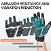 IMPACT & VIBRATION REDUCTION, ABRASION RESISTANCE - 5mm 3D-structured PVC/TPR patches on the back extending to fingertips for great impact protection. High dexterity neoprene padding offering stereoscopic vibration resistance. Cow leather Palm for abrasion reaching EN388 level 3 under 2000 circles, with CE Standard 20000 circles abrasive Amortex fabric patch for highly durability & vibration reduction
