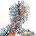 Package Includes: Pack of 1 silver Christmas pre-lit tinsel garlands with battery operated colored LED string lights.