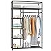 Multifunction: 5 Tiers Garment Rack ensure you enough space to place your clothes, accessories, bedding, lining, shoes, etc. Single clothes hanging rod holds up to 75 lbs, it is great for hanging suits, coats, long dresses, jackets, pants, shirts or other heavy clothes.
