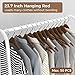 【Fit Your Space & Needs】Dimension: 50.5-74" L x 21.6" W x 57-67.4" H. The extensible horizontal rods of double rail garment rack from 50.5" to 74" provides 3 times more space than ordinary single rail garment rack. Height adjustable from 57" to 67.4" accommodates short and long garments. You can adjust the length and height of rods to meet your space needs.