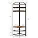 【Durable Stable Construction】:Size:HxWxL-71.3"x18.1"x18.1".Premium robust heavy duty iron tube frame.Think eco-friendly wooden chipboard.It provides a strong and sturdy bench for adult to sit on.Anti-toppling screw are included to ensure safe use.Adjustable foot pads at bottom make this hall tree stand stable on uneven ground.Vintage rustic brown and black color matches your farmhouse accent furniture perfectly.
