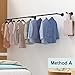 Install in No Time: All you have to do is place the guide onto the wall, drill your holes, put in the anchors, and install the screws. Once the two foldable clothing racks are secured, add the extended rod. Then, you can begin organizing!