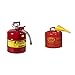 Type I safety can used to store, transport, and dispense flammable liquids safely; has single spout for filling and pouring
