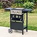 【Stainless Steel Burner】2 Stainless steel burners for ideal heat control with battery operated electronic ignite system, quick start up with the push & turn of a control knob. Flat top grill provide a total 20,000 BTU of cooking power. Two fixed side tables provide ample space for food preparation. Storage shelf at the front panel keeps your grilling accessories within arms' reach.