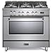Made in Italy - Stainless Steel, Gorgeous, Unique Dual Fuel Range Oven (Gas Burners Electric Oven) - 52,000 BTU Output, Continouus Grates, Electronic ignition,This range is durable and has high corrosion resistance.