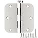 5/8"Radius door hinges, 4 inch x4 inch brushed nickel Includes 108 free screws for quick and easy installation.Door hinge 5/8"Radius 4in can be rotated 270 degrees.The extra long screws will come in handy specially when replacing existing hardware using the same hole pattern.