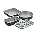 9-inch loaf pan, 9-inch square cake pan, 9-inch round cake pan, and 6-cup muffin pan
