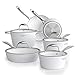 【Excellent non-stick process】Swiss-engineered Terralon ceramic non-stick coating allows for cooking with little oil or fat. Elegant white color inside and out matches stylishness with function. 100% PTFE/PFOA/Cadmium/Lead free.