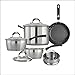 SET INCLUDES: 1.5 Quart saucepan with glass cover, 2.5 Quart saucepan with glass cover, 3 Quart saucepan with helper handle and glass cover, 8 Quart stockpot with glass cover, 8" Skillet, 10" Skillet, and 18cm Steamer insert