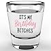 Your purchase includes a single 1.75 ounce shot glass; each birthday cup is printed in black and pink ink; the design "Its My Birthday Bitches" will be printed on one side only