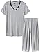 【Features】: This cute womens pajamas sets featuring a V-neck tee, short sleeve pajamas and prints, elastic waistband and drawstring capri pajama bottoms, this two piece pajama set will give you a pleasant sleep experience.