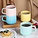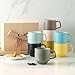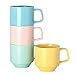 【ELEGANT DESIGN】:The cute mug with stripe design can be able to blend into any home decoration.The cups are available in 8 solid colors and 2 color mixing options, navy, pea green, grey, mustard yellow, light yellow, turquoise, mint green, pink, warm color assorted, cool color assorted. They are LEAD-FREE, non-toxic, chip-resistant.