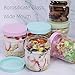 🎁.DISWASHER SAFE & FREEZER SAFE: Pyrex glass jar with wide-mouth bpa-free pp lid. We designed it easy to clean, washable and dishwasher safe. The lid will not get mildewed on the wet, superior design features enable a much longer service life than competitive products. You can store frozen food in our glass jars, can keep the food fresh and tasty, store refrigerated food in reusable glass containers is more environmentally friendly.