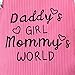 Cute newborn girl clothes: ribbed ruffle romper with "Daddy's Girl Mommy's World"word design, butterfly pants, matching bowknot headband, super fashionable 3pcs baby clothes for girls in Spring Summer Fall.