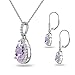 FEATURE - Wear this stylish set to enhance your daytime and evening attire. This beautiful jewelry set features dangling pear-cut amethyst gemstones in a white topaz encrusted halo design, for a dazzling evening look. The earrings measure 9.5mm in width & 11.6mm in length and the pendant measures 11.5mm in width & 25mm in length.