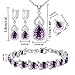 ♥UNIQUE JEWELRY♥: GZWHD designer uses an graceful 3D "S"-shaped arc structure inlaid with shining cubic zirconia to fix the 12mm*16mm(pendant)and 10mm*14mm(earrings and ring)waterdrop purple cz. Tennis bracelet set with oval created amethyst and crystals.The metal bracket is plated with platinum, lead-free, nickel-free, non-allergenic, shiny and will not change color, easy to maintain.