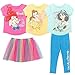 Disney Princess little girls cute and stylish 5 piece outfit set with 3 short sleeve tee shirts, one pair of comfy leggings and an adorable skirt