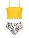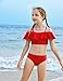 TRENDY DESIGN:Our girls two piece bikini swimsuit features shirred charming flounce crop bikini top with adjustable straps, and 3D floral printed high waist bikini shorts, which offers a simple and lovely look to girls