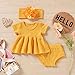❤Adorable Design: Round neck baby girls tunic shirt tops and bottoms shorts and flower headband 3pcs pants set is with classic knitting style. Cute & elegant solid color summer clothes set for baby girls. Short sleeve short set is more suitable for baby to wear in hot days. There is a pleated/smocked design at waist. And the elastic waist is for a better fit. Natural newborn baby girls shorts set play wear. She will look like a little princess when wearing this unique summer outfits.